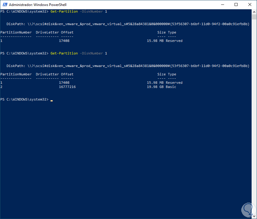 Get-Partition -DiskNumber (número)