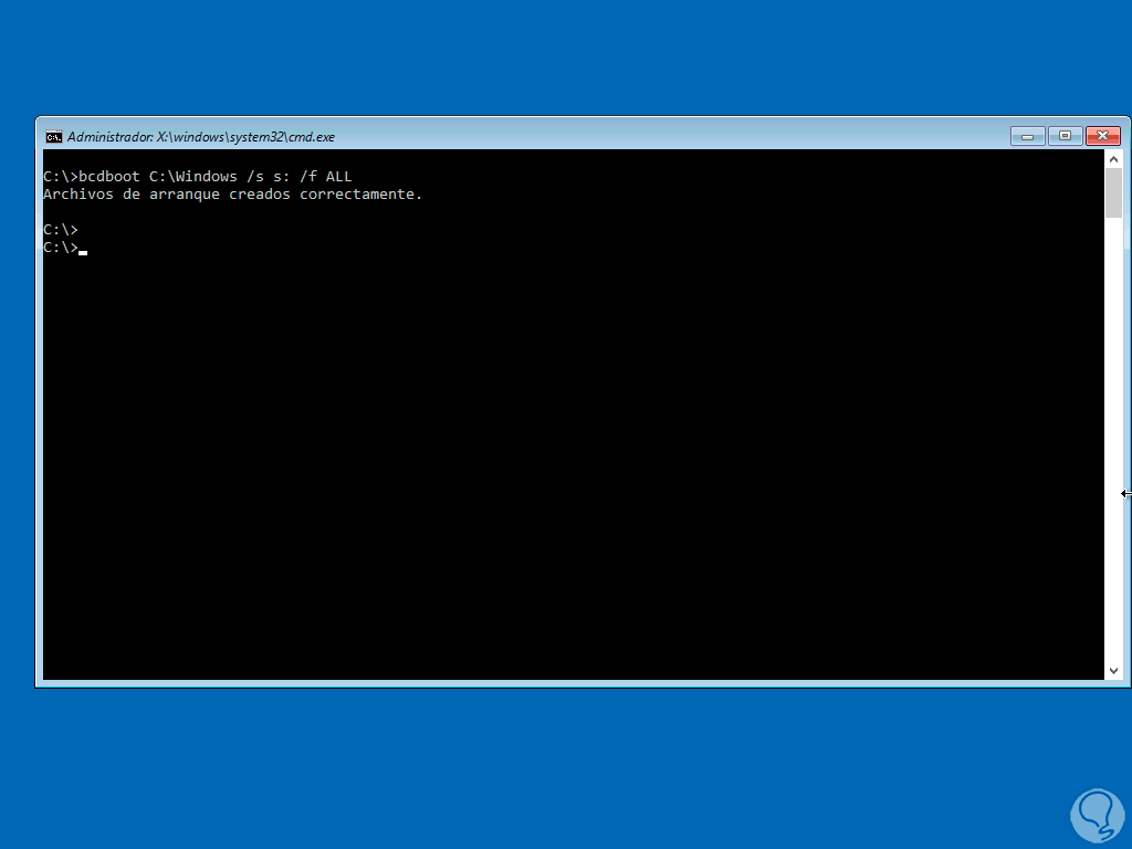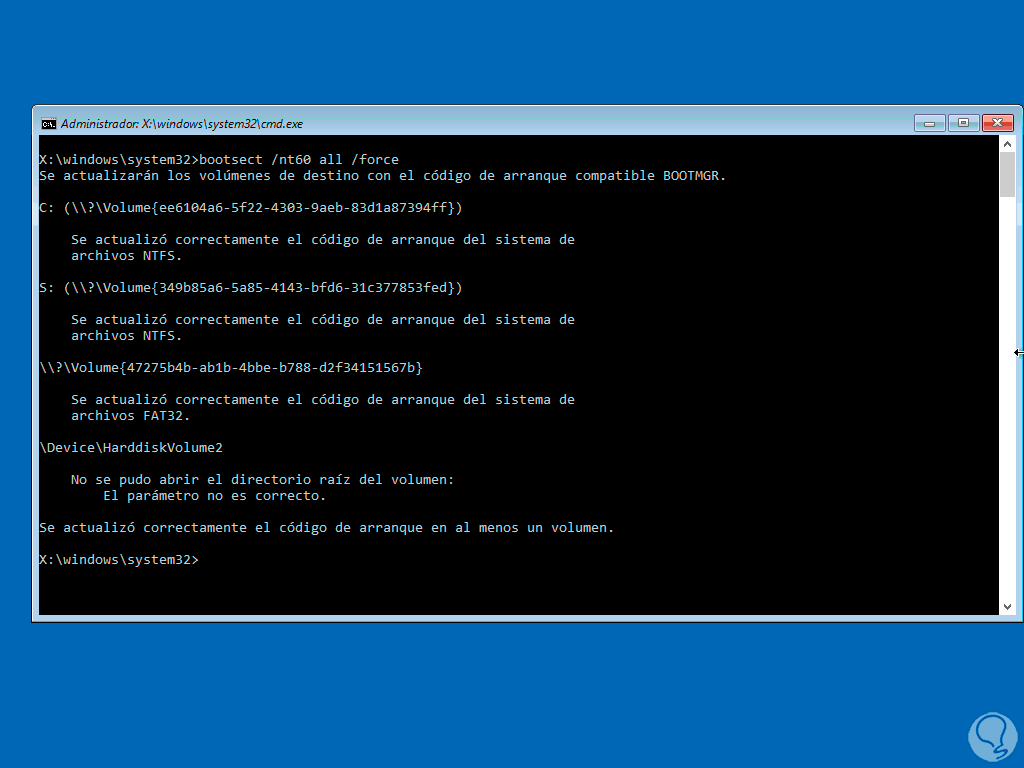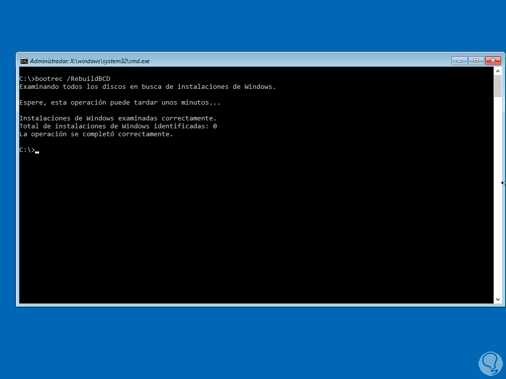 bootrec /RebuildBCDEspera que finalice el proceso: