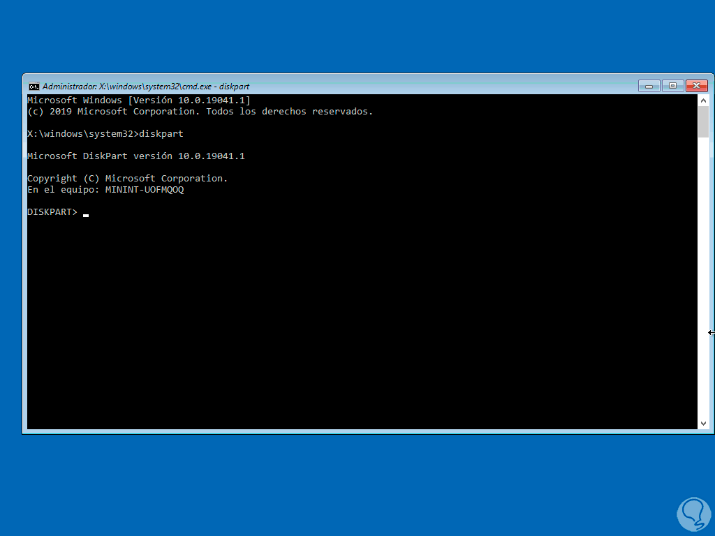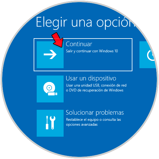 Salimos de la consola y damos clic en "Continuar" para acceder a Windows 10: