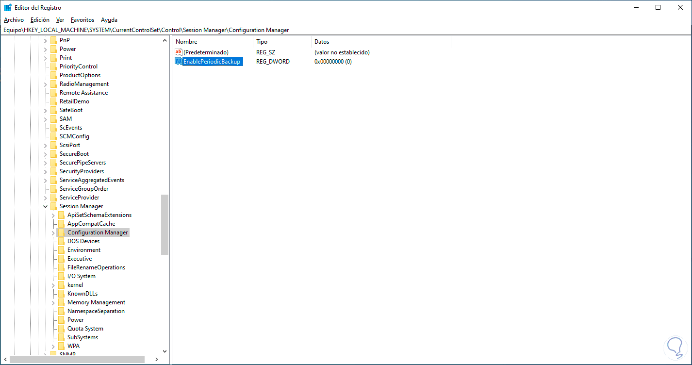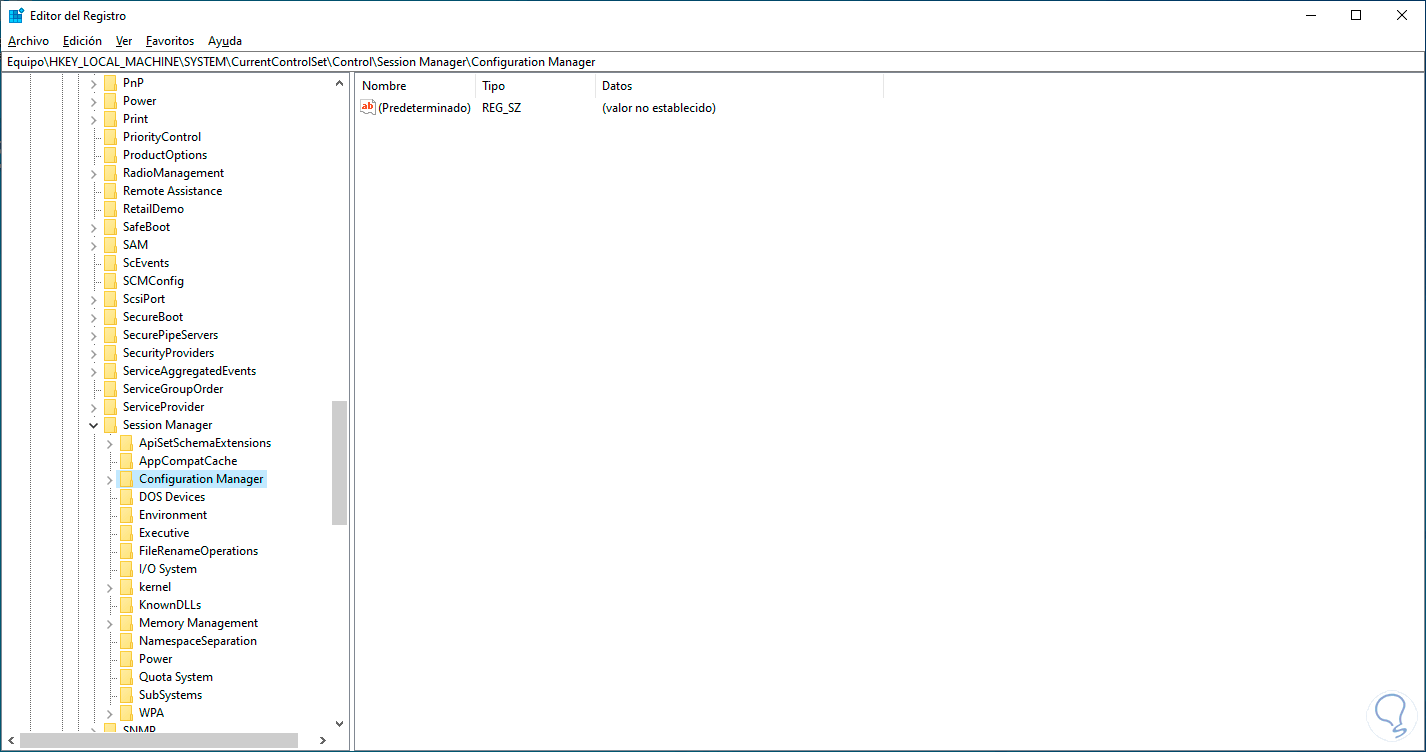 HKEY_LOCAL_MACHINE - SYSTEM - CurrentControlSet - Control - Session Manager - Configuration Manager