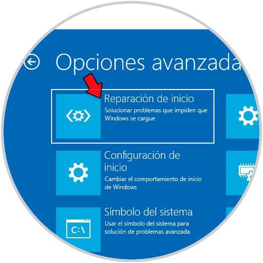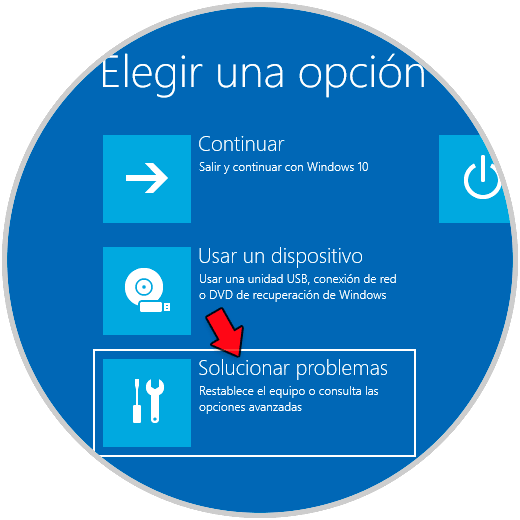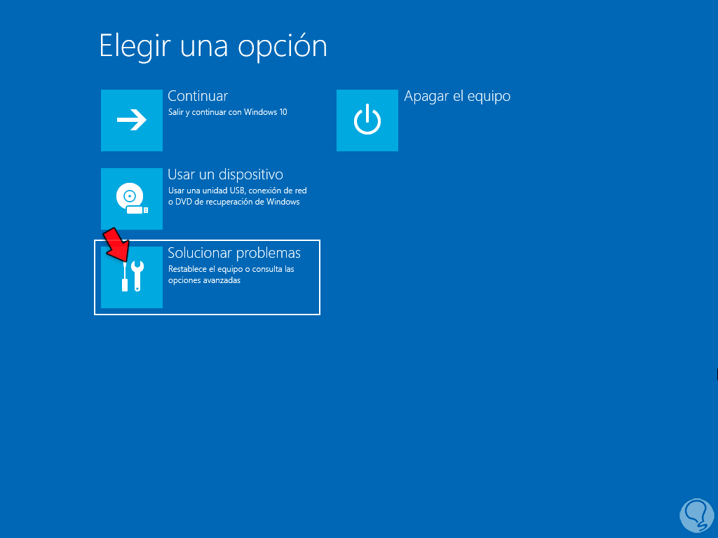 Damos clic en a “Solucionar problemas” y luego damos clic en “Opciones avanzadas”: