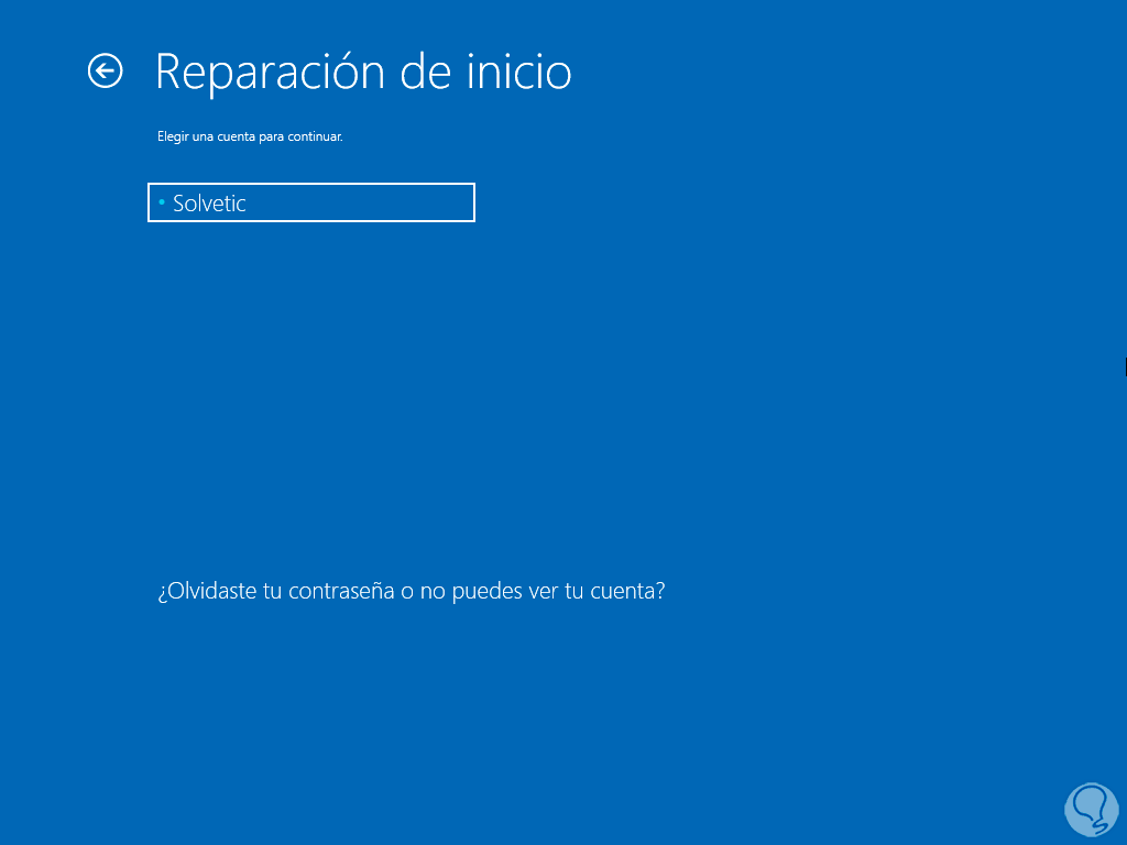 Damos clic en “Reparación de Inicio” para intentar buscar las fallas para corregirlas, seleccionamos el usuario:
