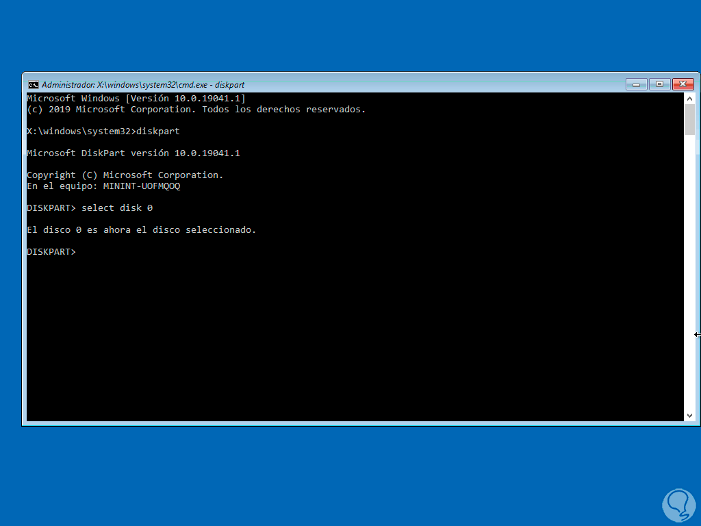 Seleccionamos el disco el cual es el disco principal por defecto: