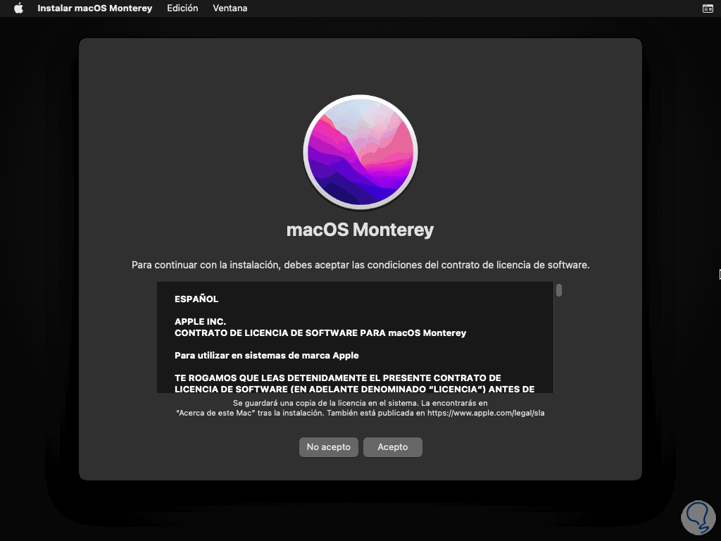 Aceptamos los términos de licencia y debemos confirmar esta operación: