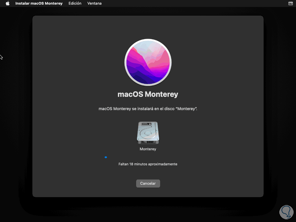 Después de un tiempo automáticamente se iniciará el proceso de instalación de macOS: