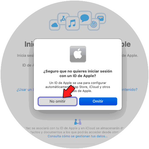 En caso de no iniciar sesión con el Apple ID debemos confirmarlo: