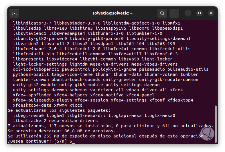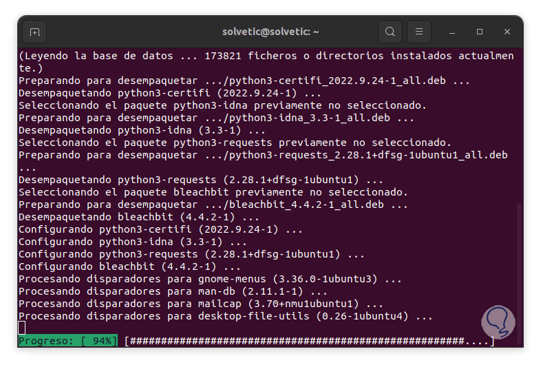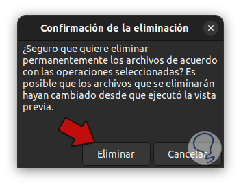 Confirma el proceso para proceder con el borrado y así mejorar el rendimiento de Ubuntu.