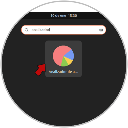 Esta es la utilidad integrada en Ubuntu con la cual podremos realizar un análisis detallado del disco duro y así definir qué espacio ocupada cada proceso, con ello será posible administrar de forma directa que es o no vital, en el buscador abrimos el Analizador de discos de Ubuntu: