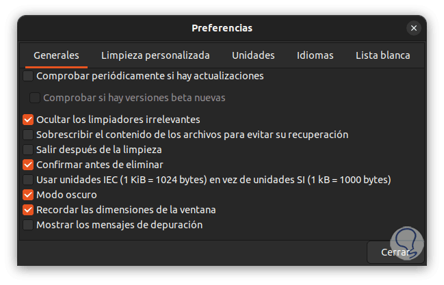 Activamos las casillas deseadas y luego damos clic en "Limpiar", veremos la siguiente ventana: