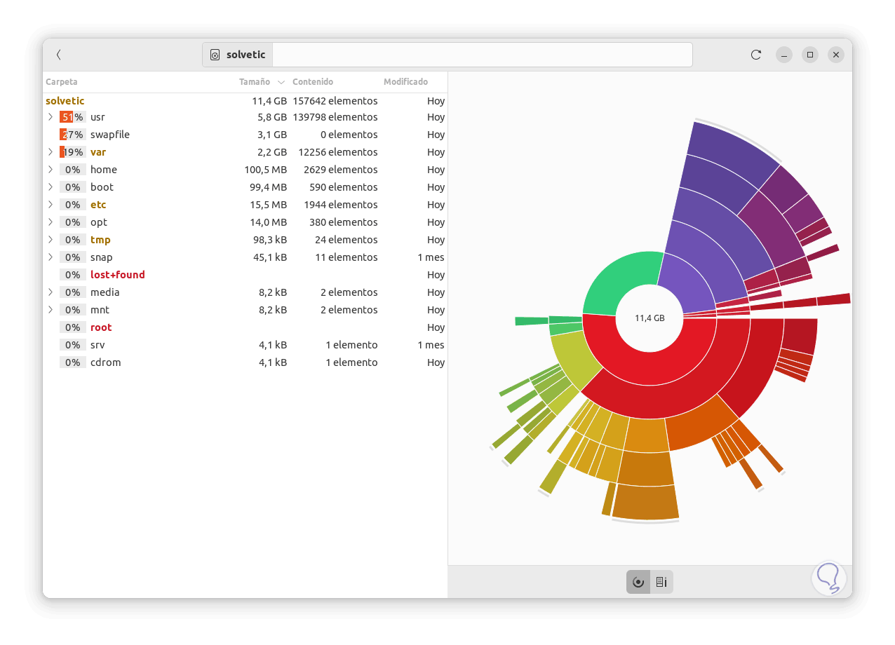 Es ideal para un control preciso de cada espacio ocupado en el disco duro.