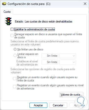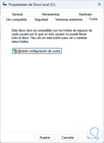 Es posible dar clic en “Mostrar configuración de cuota” para tener acceso a las opciones: