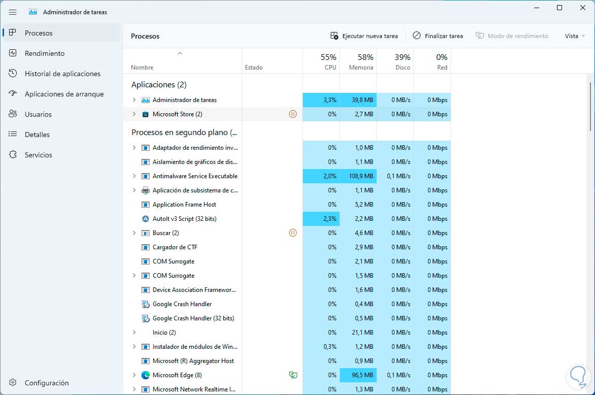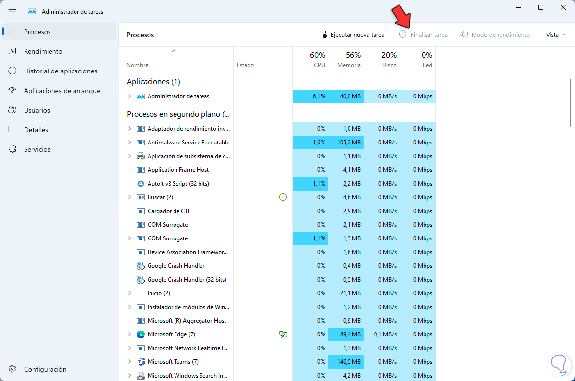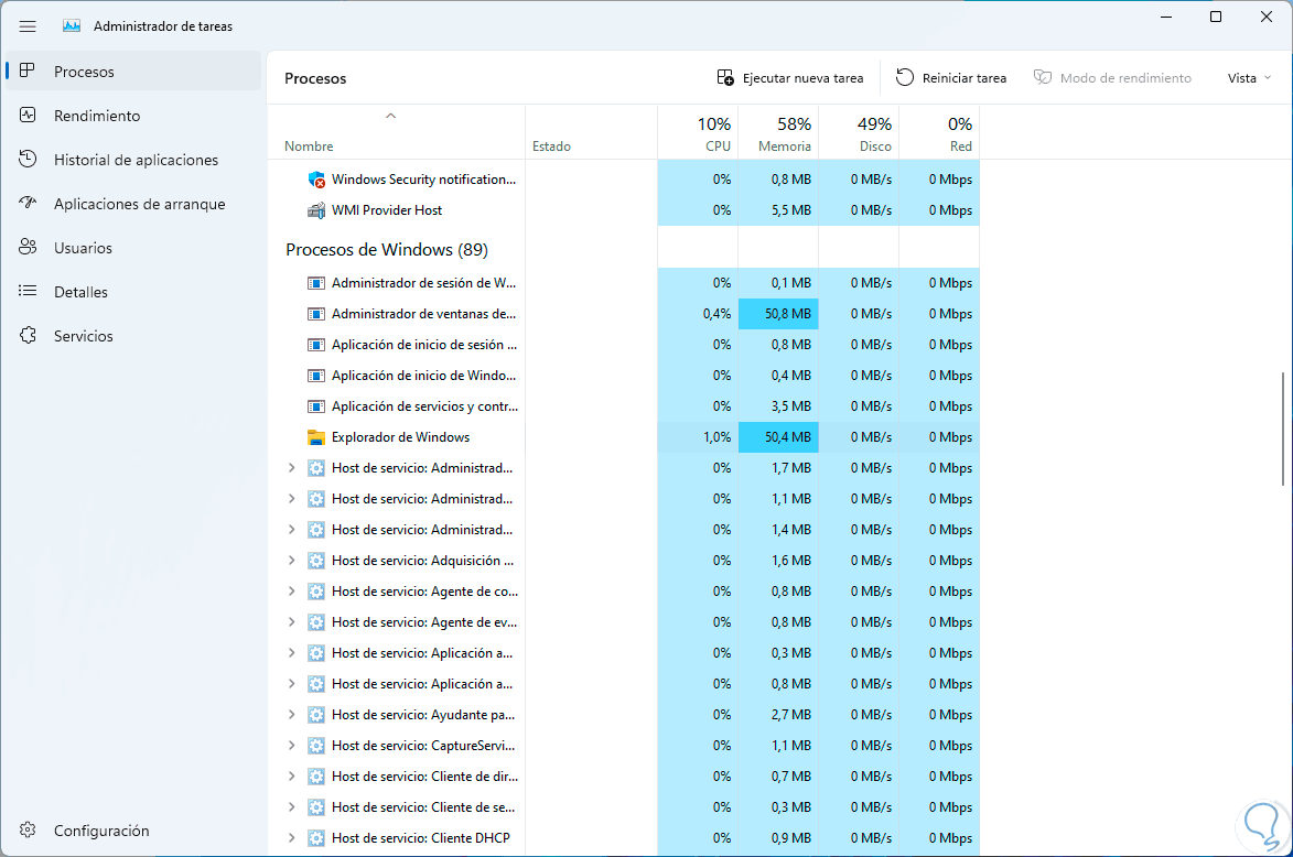 Con esto podemos revisar si algún virus esta dando lugar al consumo alto de la RAM.