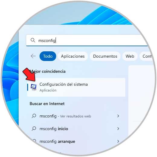 En el buscador de Inicio ingresamos "msconfig" y selecciona la utilidad: