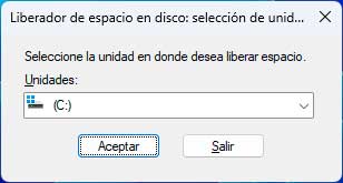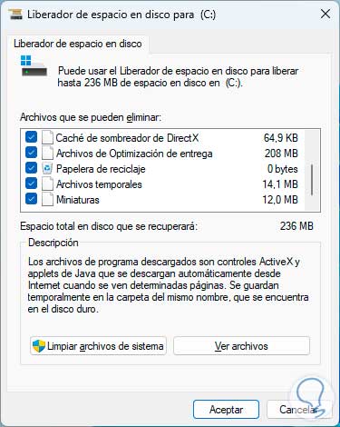 Activamos las casillas deseadas que ocupan espacio en el disco y damos clic en "Aceptar", se abrirá lo siguiente: