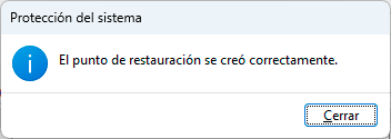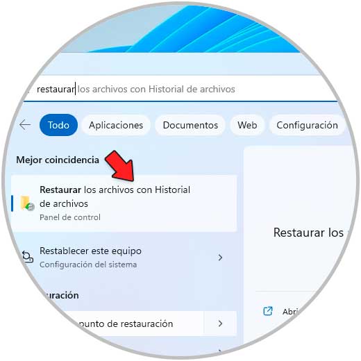 En el buscador de Inicio ingresamos "restaurar" y damos clic en "Crear un punto de restauración":