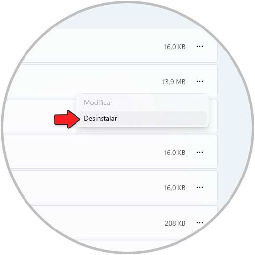 Damos clic en el menú contextual de la aplicación y seleccionamos la opción "Desinstalar":
