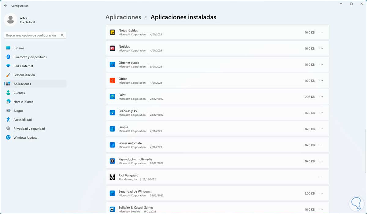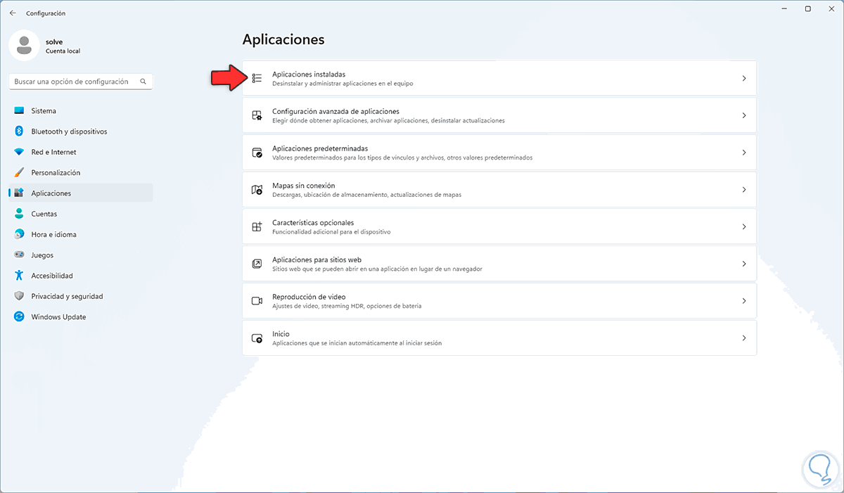 Vamos a "Inicio - Configuración - Aplicaciones - Aplicaciones instaladas":