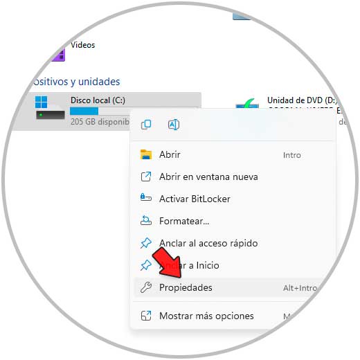 Ahora abrimos el Explorador de archivos, damos clic derecho sobre la unidad C y seleccionamos la opción "Propiedades":