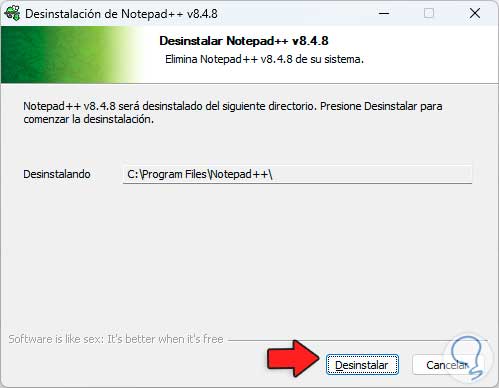 Confirma el proceso y es posible que se abra el asistente de desinstalación en base a la app a desinstalar: