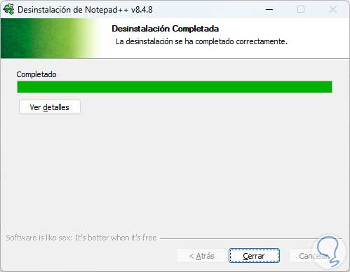 Luego ejecutamos la siguiente sintaxis para desinstalarlo: