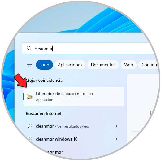 Si no vemos la opción "Liberar espacio" cerramos la ventana y en el menú Inicio ingresamos: