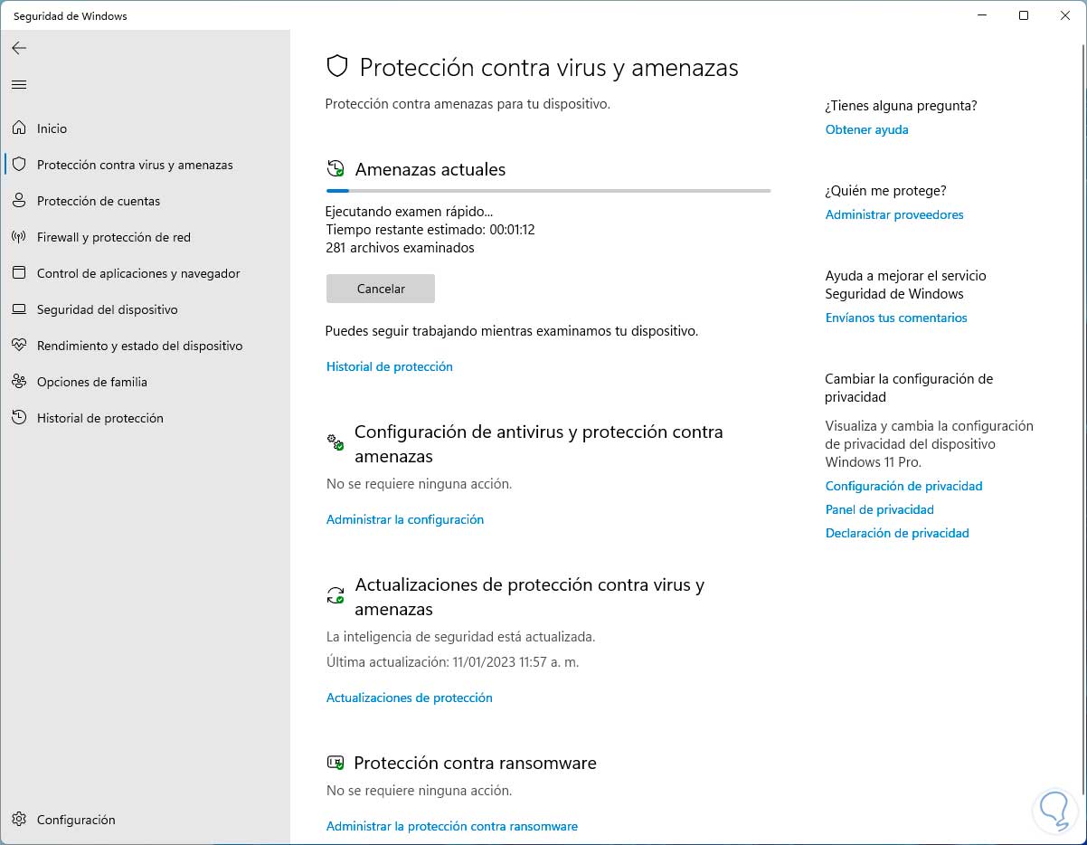 Damos clic en "Examen rápido" para ejecutar un análisis esencial: