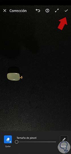 Una vez acabes con todos los cambios de corrección necesario vamos a aplicar todos los cambios en nuestra fotografía mediante el check superior que aparece.
