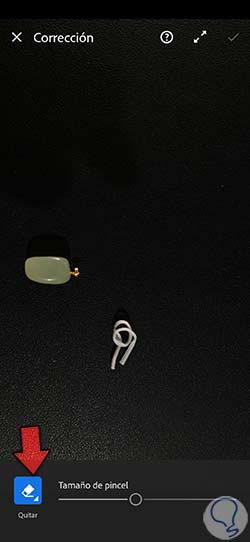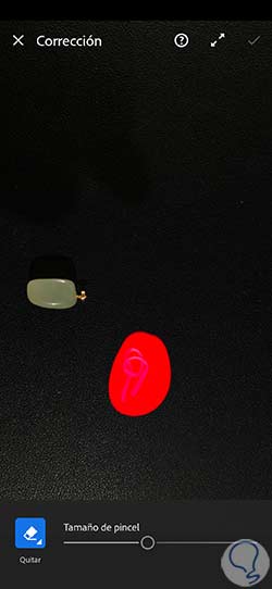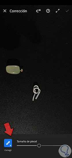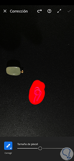Pulsamos sobre la opción de “Corregir” en el desplegable y ajustamos el tamaño del pincel para comenzar a pintar.