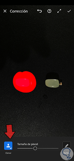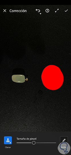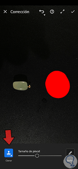 Ahora mantendremos pulsada la zona donde queremos que se muestre la clonación y la veremos representada por un área roja.