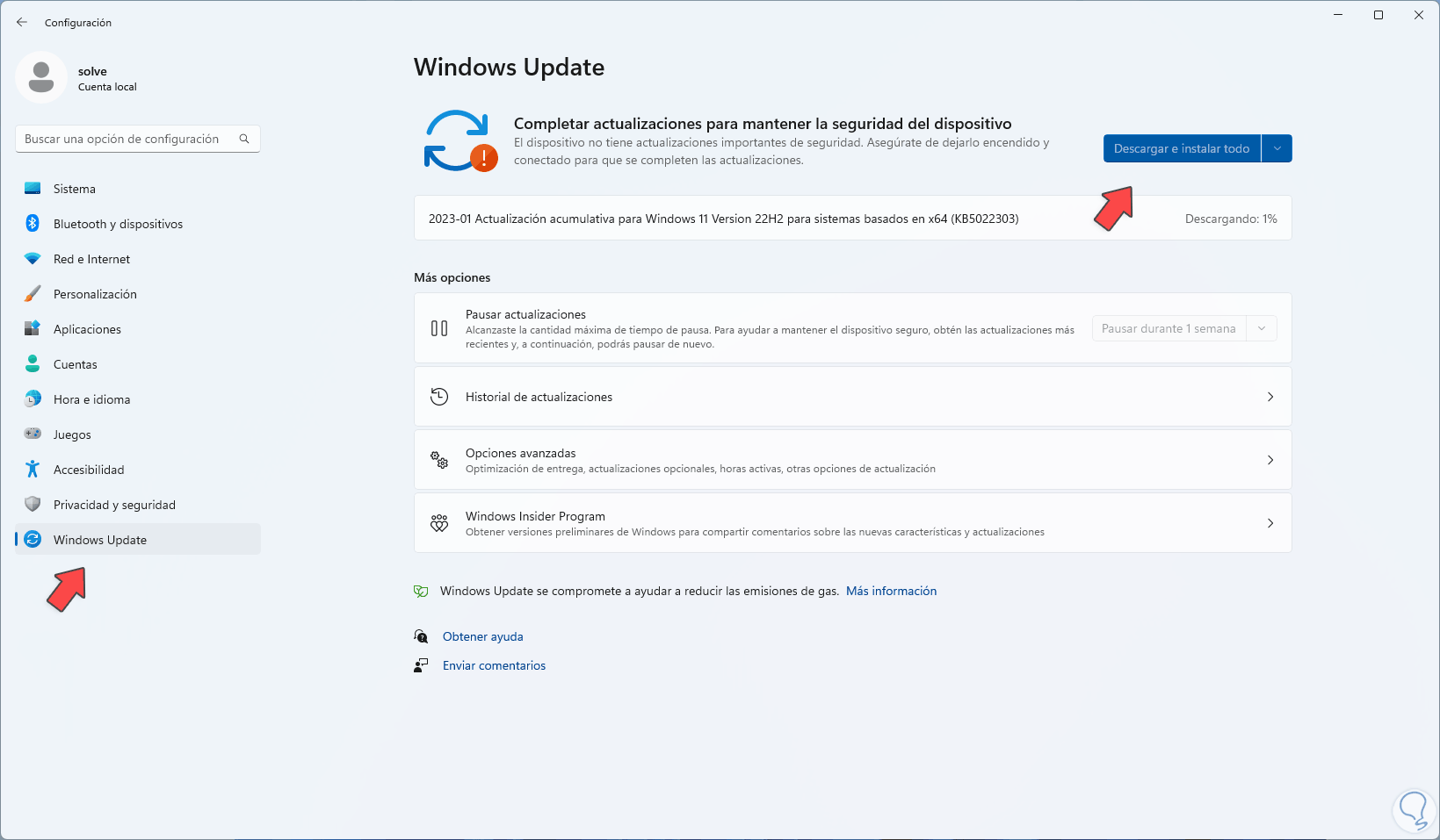 Este error también puede ser solucionado actualizando el sistema operativo, recordemos que algunas actualizaciones nos ayudan a corregir diversos problemas del sistema y para realizar esto iremos a: