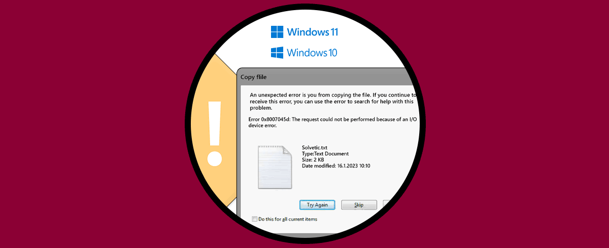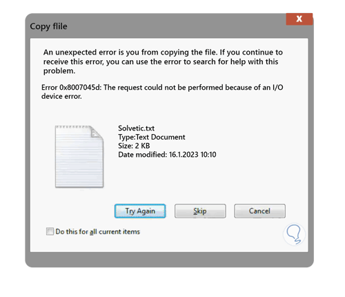 Windows 11 / 10 nos despliega una serie de errores que determina la causa del error en mención y esto permite a los administradores tener certeza de que sucede en el equipo o en sus derivados y así poder buscar una solución directa a este error, uno de estos es 0x8007045d el cual hace referencia a que el software y hardware no pueden tener acceso ni leer de forma correcta los archivos en tareas como respaldos o copias de seguridad, reparación del sistema o procesos en los que hay una transferencia de archivos.