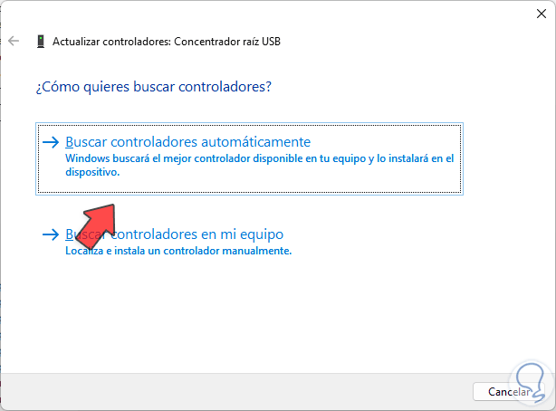 Veremos el siguiente mensaje. Damos clic en "Buscar controladores automáticamente"
