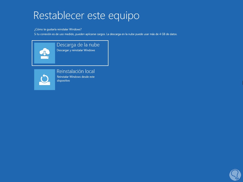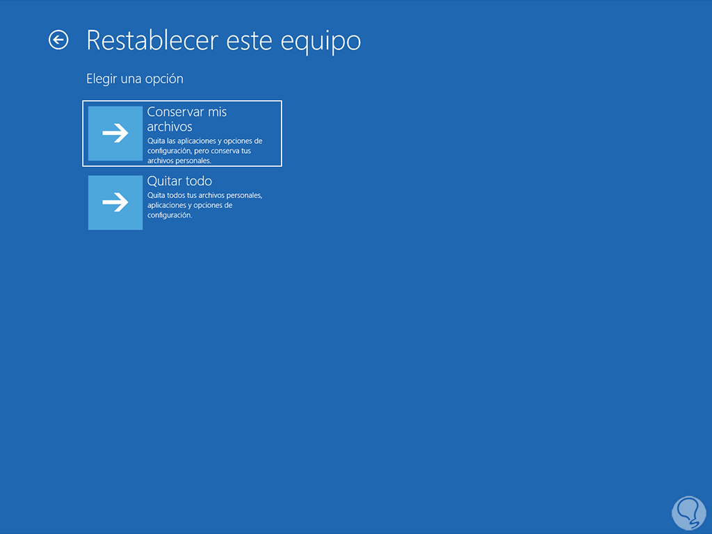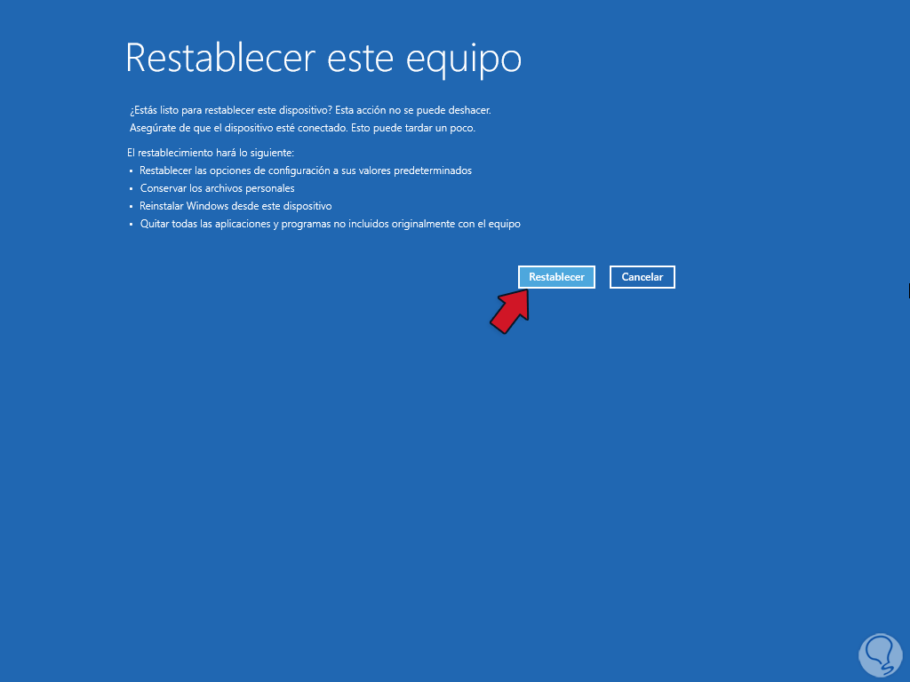 Esperamos que sea reiniciado el sistema y se proceda al restablecimiento de Windows 10: