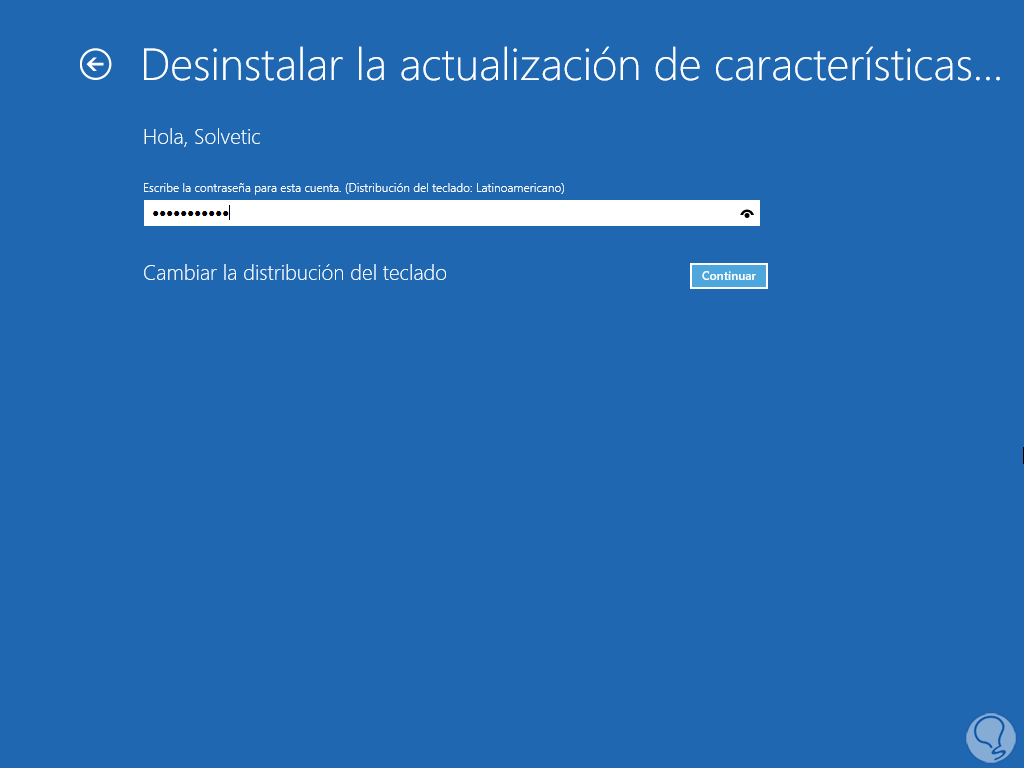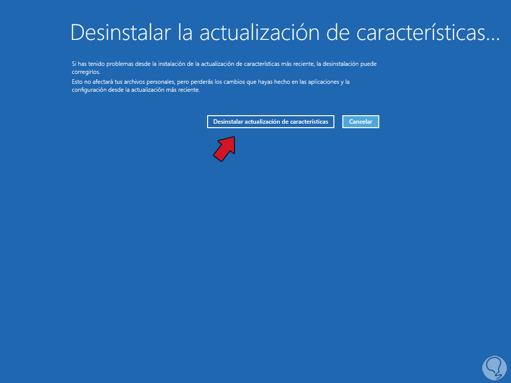 Damos clic en "Desinstalar actualización de (nombre)" y esperamos que finalice el proceso: