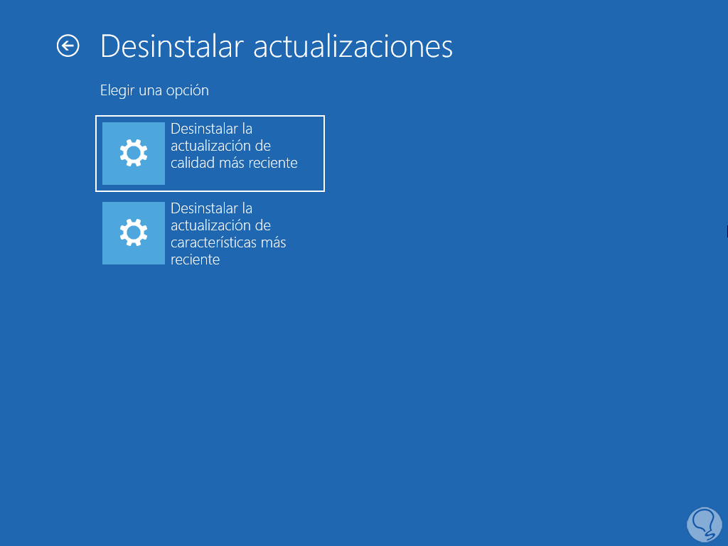 Existen diversas maneras de reparar Windows 10 sin aplicar el formato, una de estas es dar clic en "Desinstalar actualizaciones" con el fin de desinstalar las ultimas actualizaciones de calidad o seguridad instaladas las cuales pueden afectar negativamente el sistema, al dar clic allí seleccionamos el tipo de actualización a desinstalar: