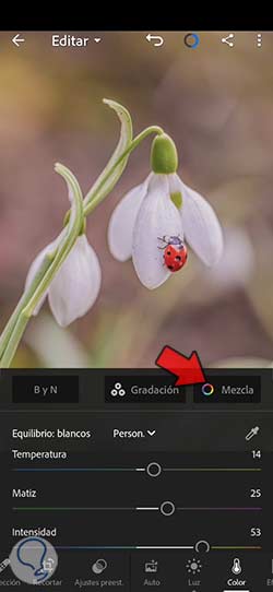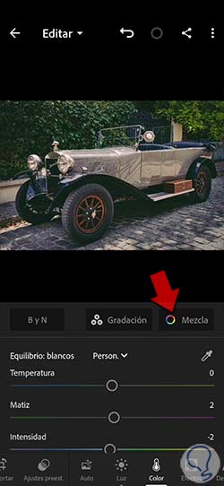Vamos a configurar ahora de forma individual nuestros colores de la fotografía. Para ello pulsaremos en la opción de “Mezcla”.