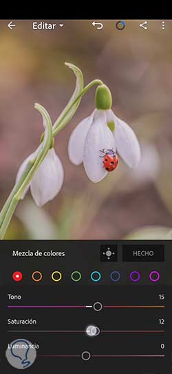 También vamos a modificar el color azul para editar la luz en tonalidades azuladas. Pulsa en “Hecho” para confirmar la edición.