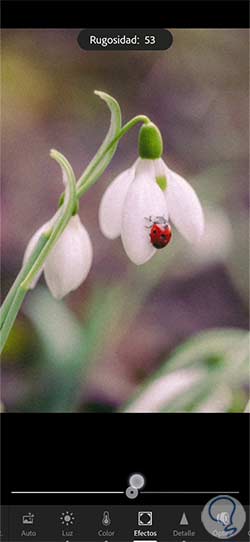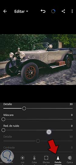 En el panel de “Detalle” vamos a mover los reguladores hasta conseguir una edición parecida a ésta: