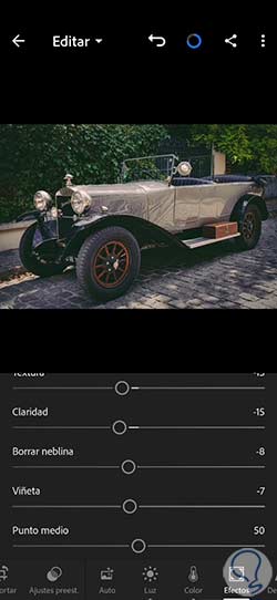 Ahora pulsaremos en la opción de “Efectos” para seguir configurando el aspecto vintage de nuestra fotografía:
