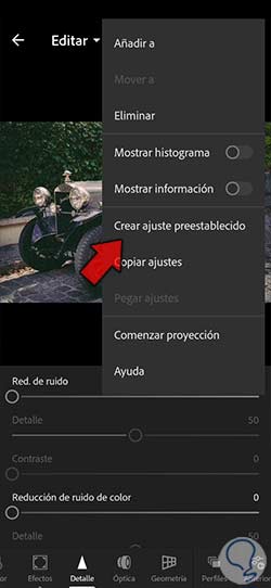 Puedes corregir algún ajuste cuando lo necesites volviendo al apartado que quieras ya que cada foto necesitará unos ajustes más concretos. Una vez termines vamos antes de guardar la imagen a guardar estos ajustes como un preset reutilizable.