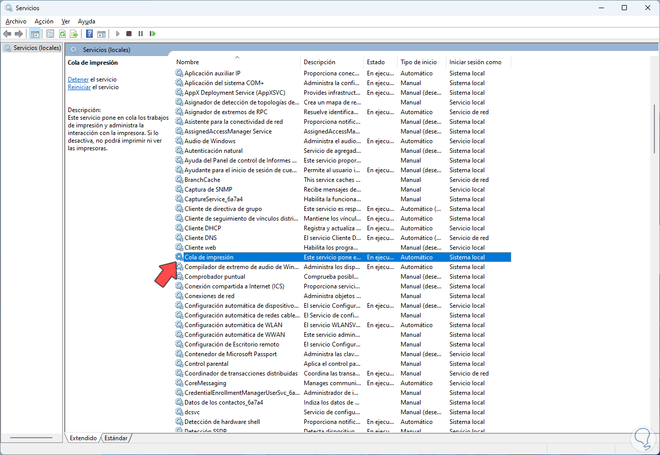 Da clic en "Reiniciar" para refrescar este servicio y comprobar que permite usar la impresora: