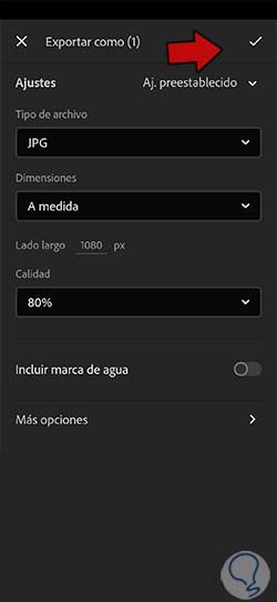 Una vez acabemos de modificar esta ventana volveremos a la ventana anterior. Si ya estamos preparados para exportar nuestra imagen procederemos a exportarla usando el check superior para aplicar los cambios.