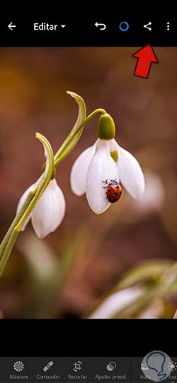 Como ya tenemos nuestra fotografía lista para ser exportada pulsaremos sobre la opción de exportar o compartir de la parte superior.