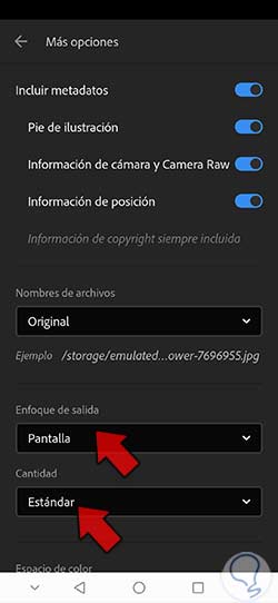 Vamos a irnos al “Enfoque de salida” que será la cantidad de enfoque que va a aplicar Lightroom Mobile en función del medio de salida y de la resolución que estemos indicando.