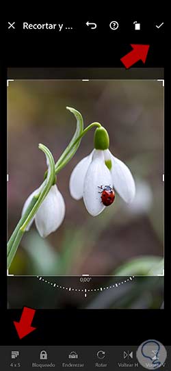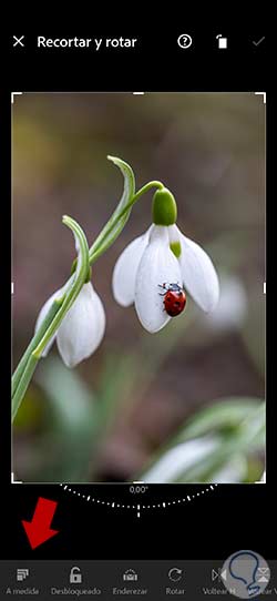 Vamos a comenzar dando unas proporciones adecuadas a nuestra fotografía ya que acabará en Instagram. Para ello pulsaremos en el apartado de “Recortar”.