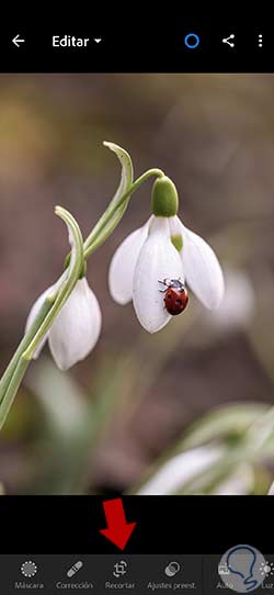 Comenzamos abriendo nuestra fotografía en Lightroom Mobile. Desde su panel de “Editar” vamos a poder aplicar los cambios que queramos a nuestra fotografía hasta dejarla lista.