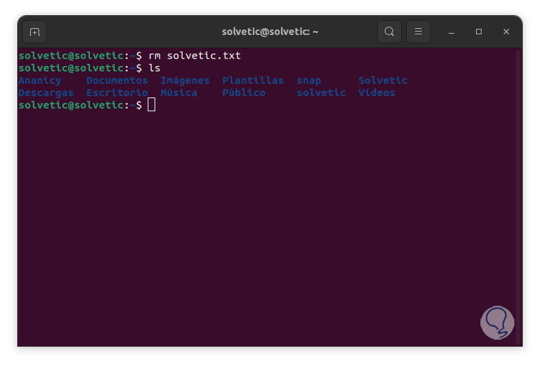 Con ello se habrá borrado ese directorio. Vemos como el comando rm se convierte en un aliado a la hora de borrar archivos o directorio pero la ventaja es que este lo hará de manera segura según los criterios que hayamos establecido en la ejecución del comando pero siendo cuidados son que elementos se borraran para no quitar algo importante.