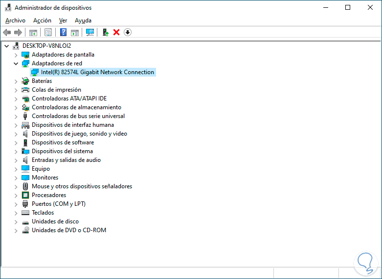 En este caso será un PC con Windows 10, ahora en "Adaptadores de red" damos doble clic sobre el controlador de red: