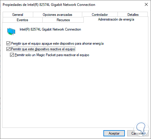 Estas son las opciones para activar Wake on Lan en PC y poder realizar el encendido remoto.