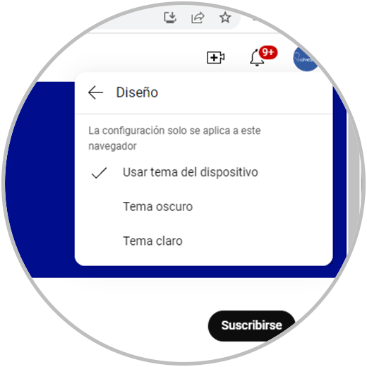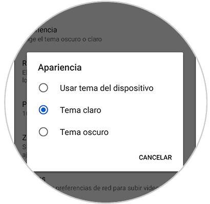 Damos clic en "Tema claro" y este se aplicará a YouTube: